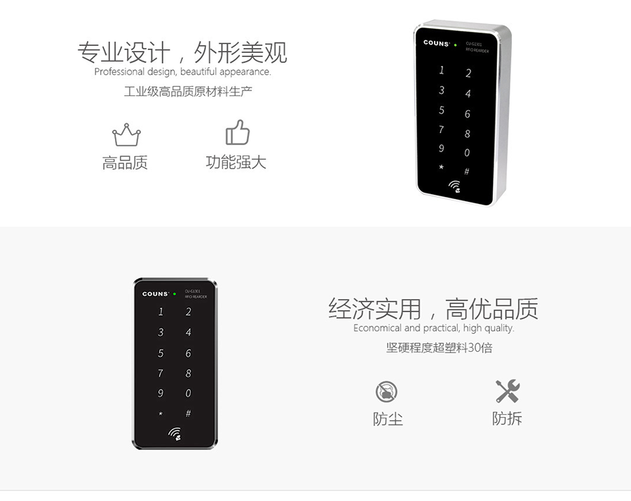 特殊钢化玻璃触摸数字面板,坚硬程度超塑料30倍